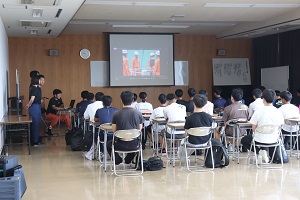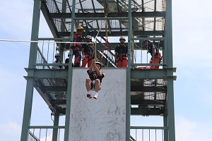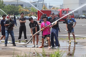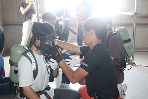 7月31日に消防士を目指す若者を対象にオープンキャンパスを開催した。本校のオープンキャンパスは、初任総合教育科で入校中の学生が企画・立案して行われる。今年度は呼吸器を着装した煙体験、高所からの降下訓練、建物火災を想定した放水体験などを行った。また、昼食には毎年好評のカレーライスが振舞われ、暑い一日の熱い体験に弾みをつけた。