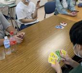 後半は、暑さを避けて室内でカードゲームをしました。笑い声が聞こえたり歓声があがったりして、これはこれで楽しいひと時でした。有意義な交流ができました。