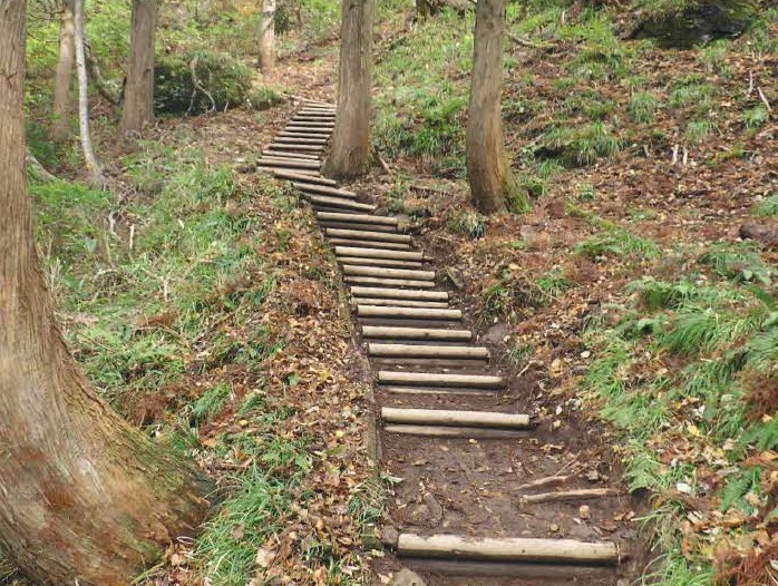 氷ノ山登山道の氷ノ越コースのキャンプ場~氷ノ越区間について、老朽化した木製階段の改修や標識の改修を行いました。
