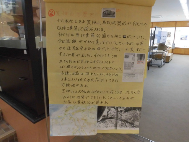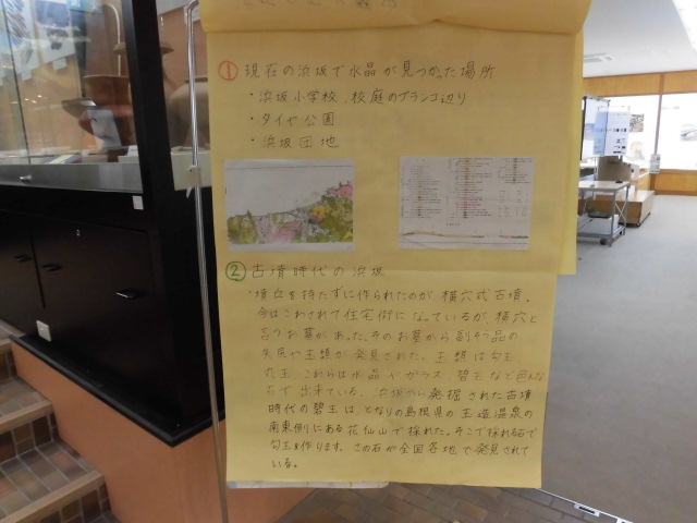 浜坂小学校の生徒さんが夏休み自由研究として「浜坂の石と歴史」を研究されていましたが、今回その成果をセンターに展示させていただくことにしました。