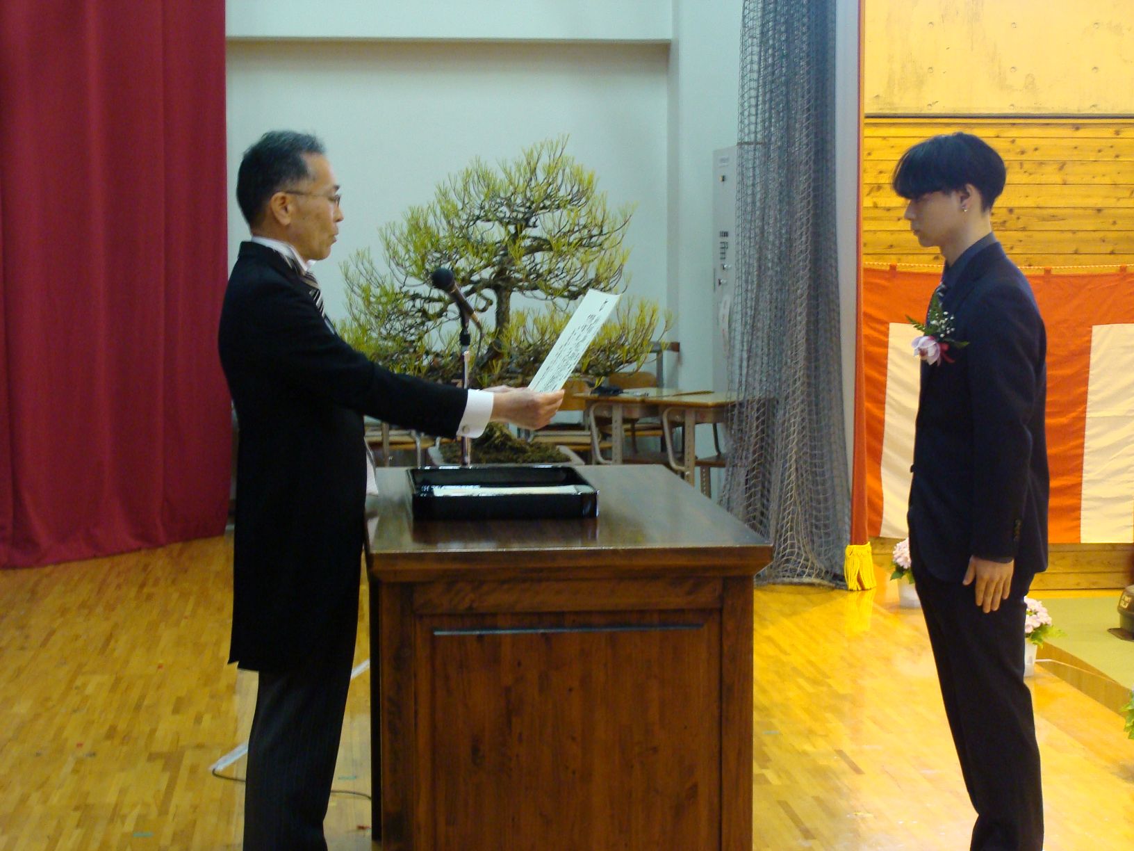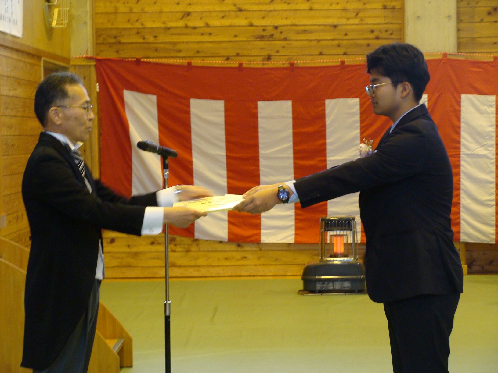 卒業式終了後、学業成績が優秀で学生会活動及び学校生活で模範となった学生が、小林校長先生と修農会の横川会長から表彰(下表のとおり)されました。
