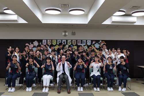 新入職者31名 院長先生のあいさつをはじめ、厚生病院クイズやチーム対抗ゲームで楽しい時間を過ごしました。