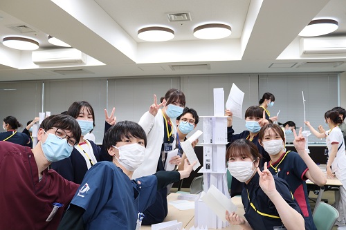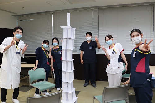 ペーパータワーゲームではチームメンバーで知恵を出し合い、高く高く紙を積み上げていきました。ドキドキ、ハラハラ、大盛り上がりでした。多職種で協力し、それぞれの知恵と技術を出し合う、まさにチーム医療です!
